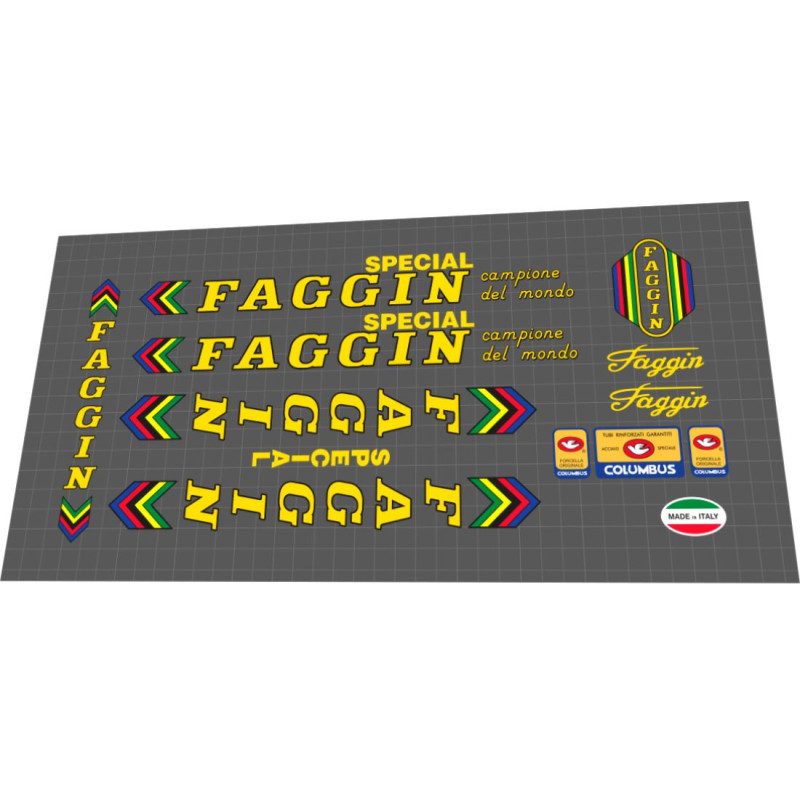 - Authentic Design: Faithfully reproduced to match the original Faggin decals, capturing the classic color scheme and retro typography.